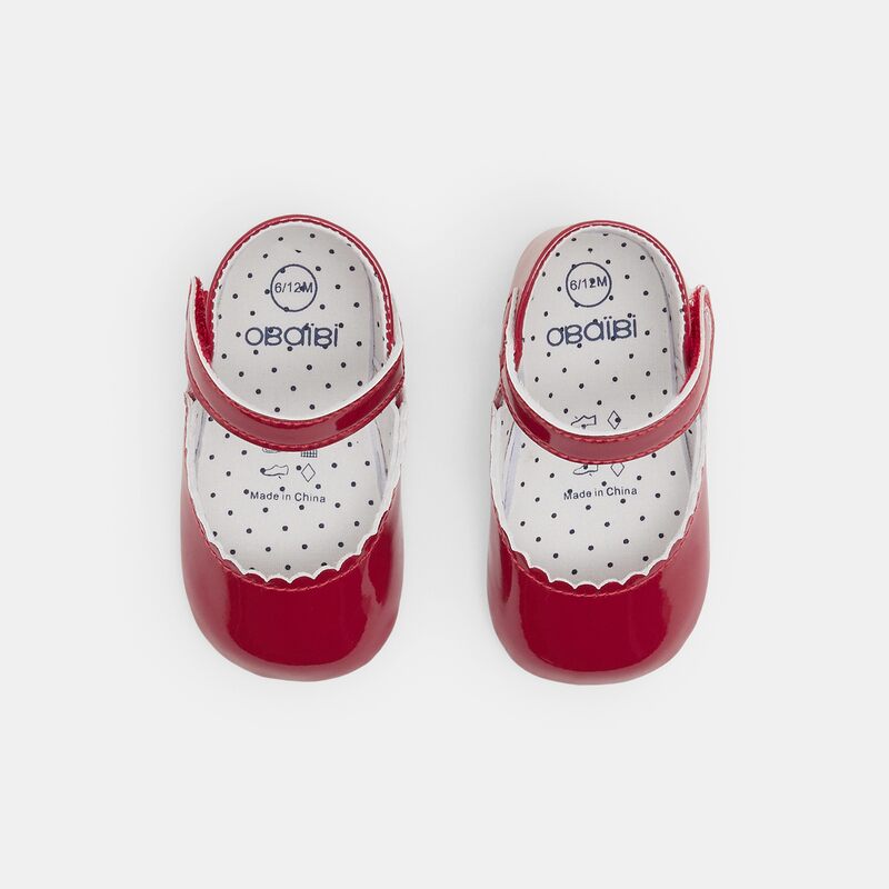 Raffinées et coquettes ! Le rouge rubis de ces ballerines festonnées est souligné par le vernis pour une touche chic dans les silhouettes des toutes petites filles. Intérieur coton doux. Fermées par une bride à scratch sur le dessus du pied.