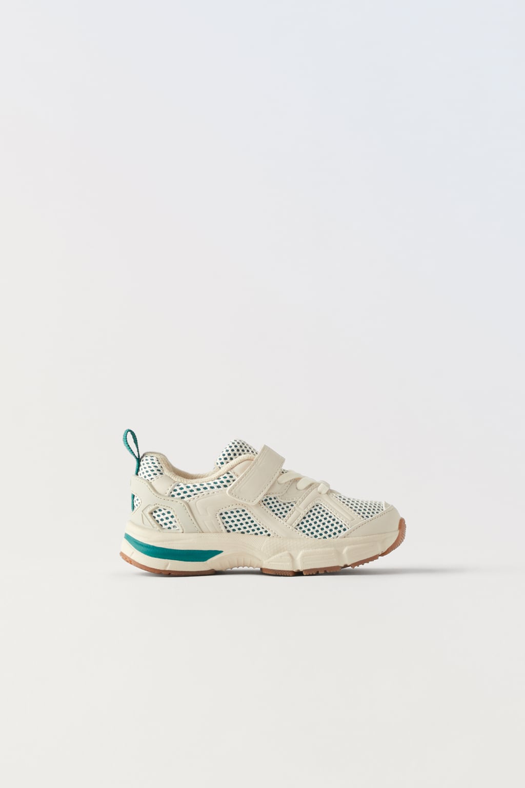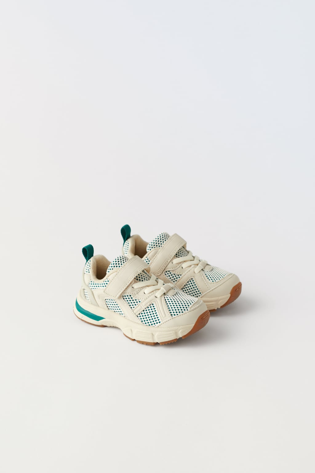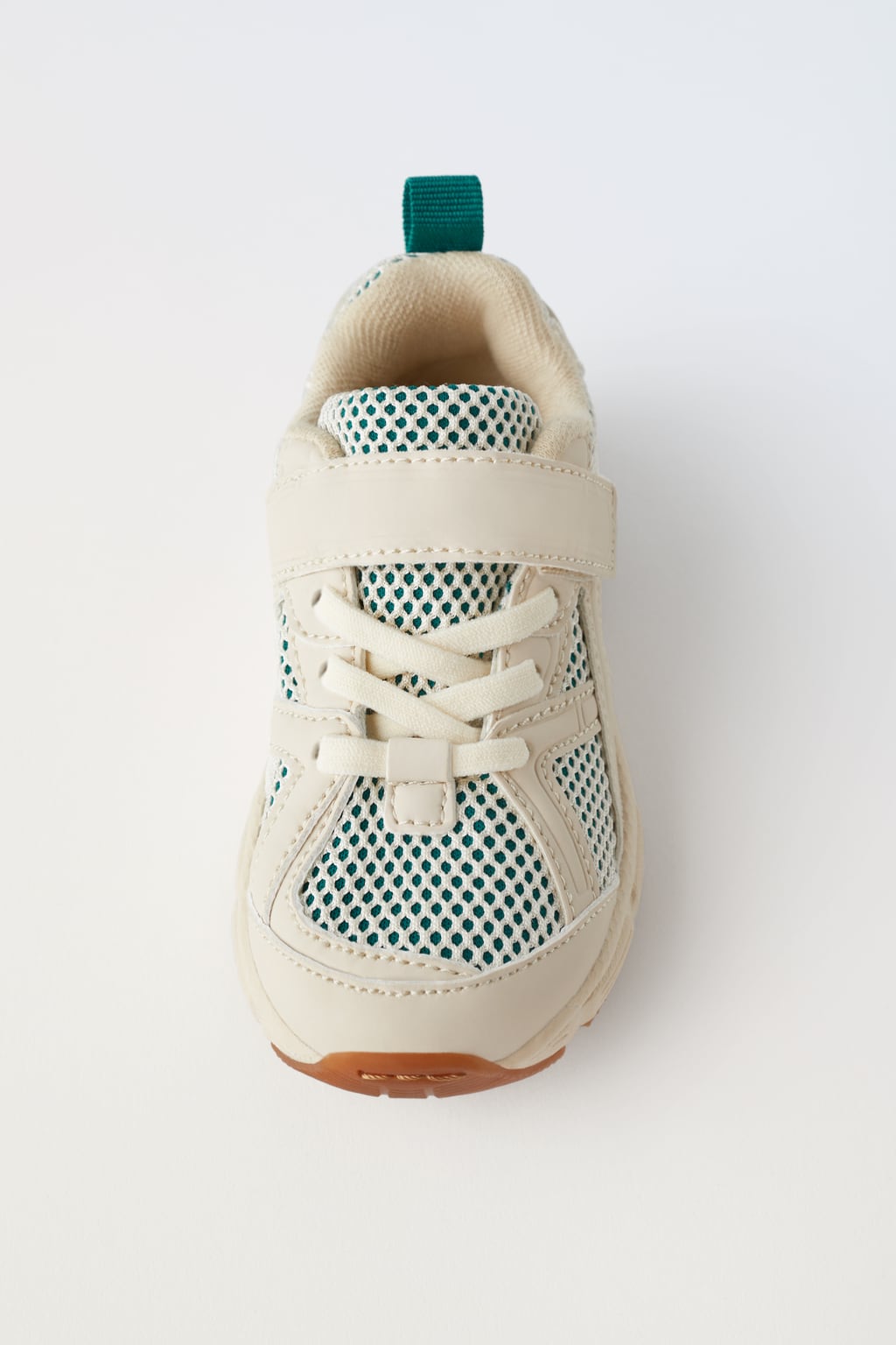 Baskets au fini résille. Fermeture par brides auto-agrippantes et lacets élastiques. Tirant à l’arrière pour faciliter le chaussage. Semelle intérieure effet mémoire de forme et doublure 100 % coton. Semelle en gomme épaisse.
