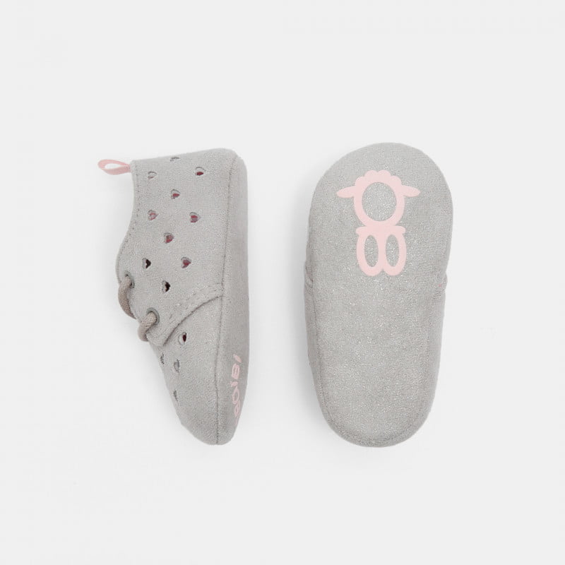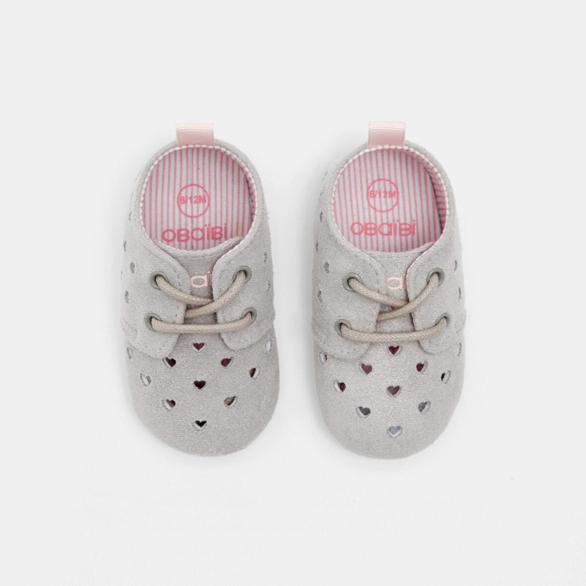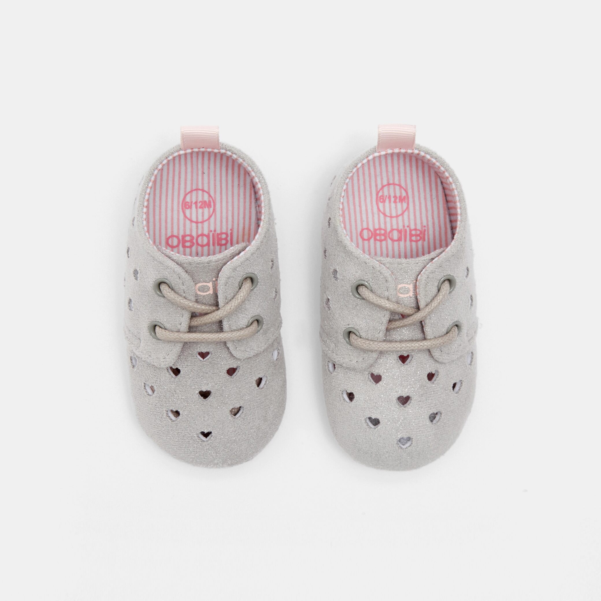 Accessoires chaussures pour bébés filles. Ballerines type ballerines/derby en microfibre brillante et souple. Fermeture par lacets ronds dans œillets. Intérieur textile doux et imprimé. Logo Obaïbi sur la semelle en microfibre.