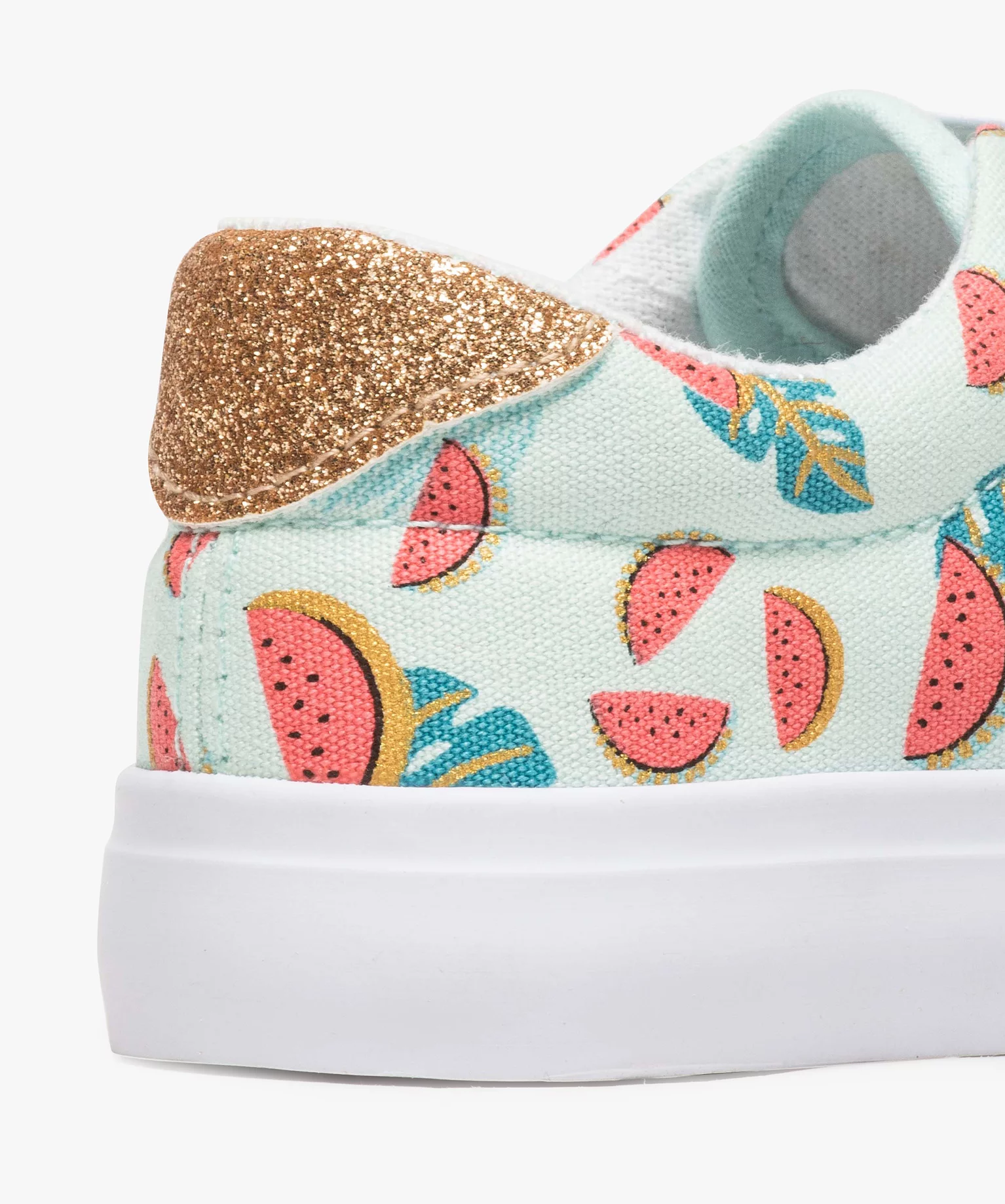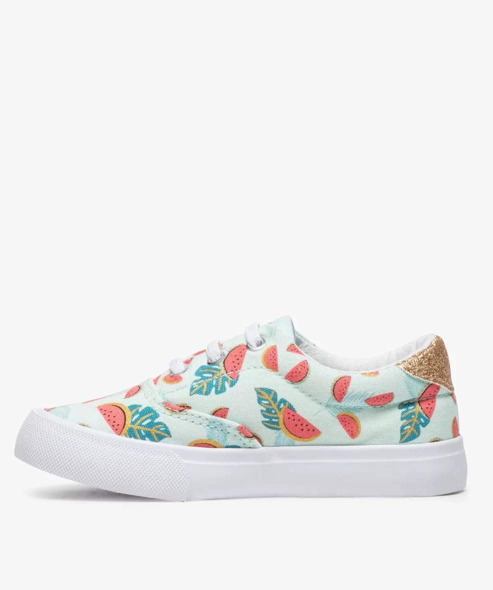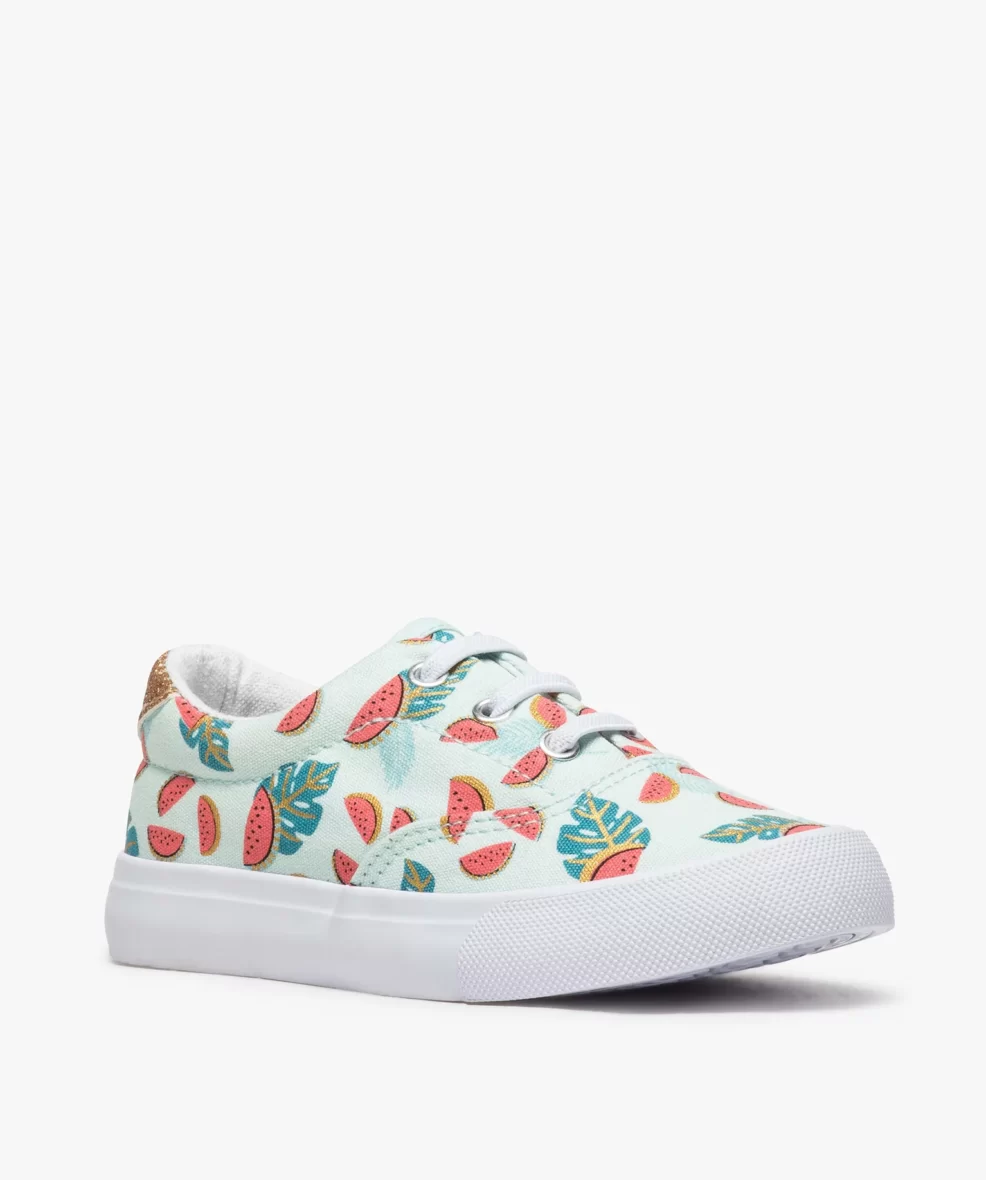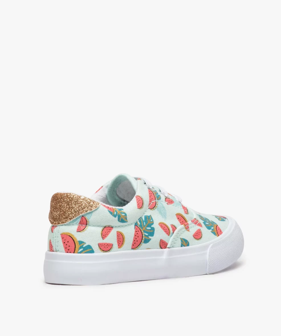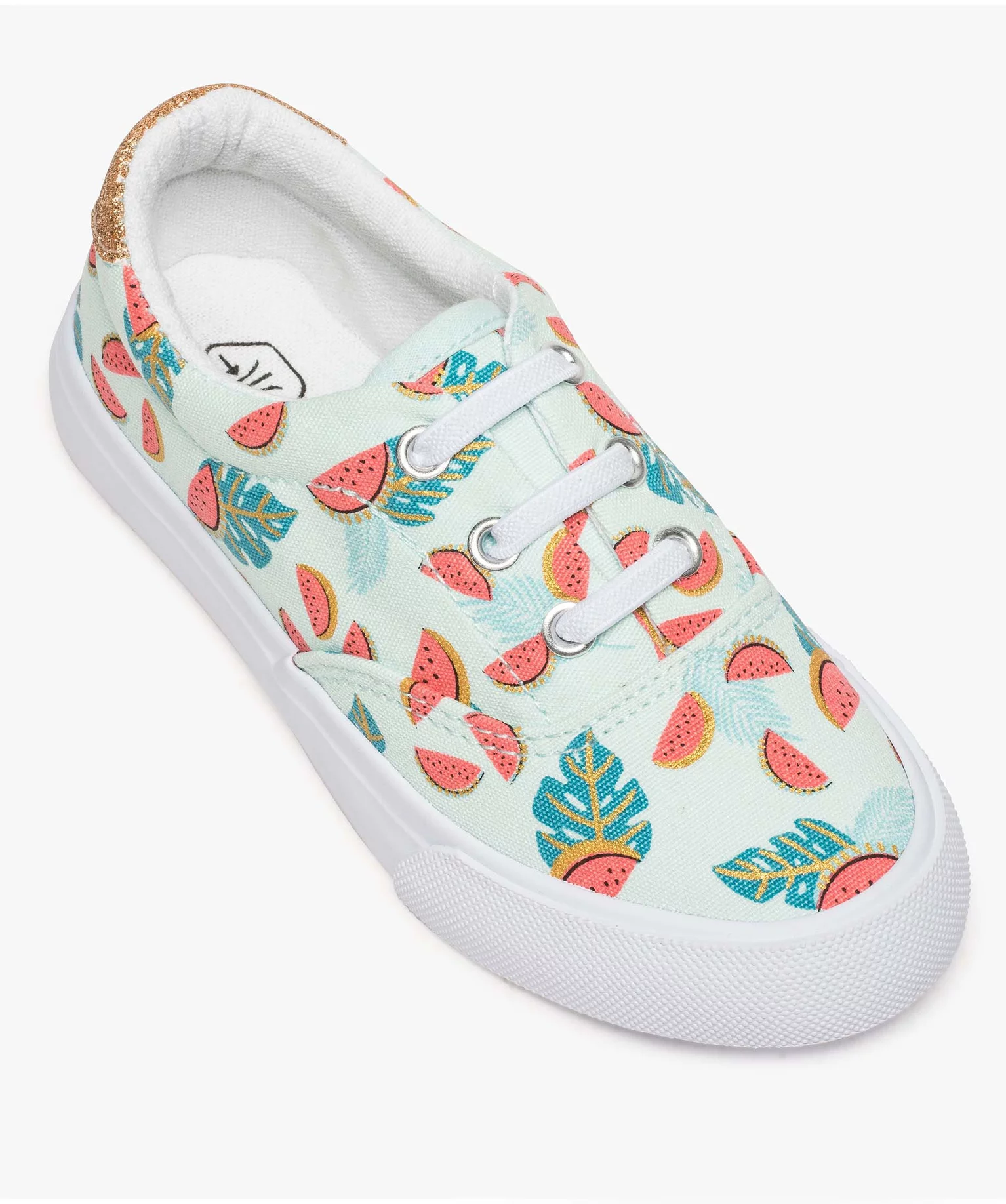 Une association de couleurs bien menée, rehaussée de petites touches brillantes et d’un empiècement pailleté pour plaire encore plus aux filles… le rêve ! Pratique : la fermeture de ces tennis se fait à l’aide de lacets élastiques, permettant aux petites de les chausser en toute autonomie.