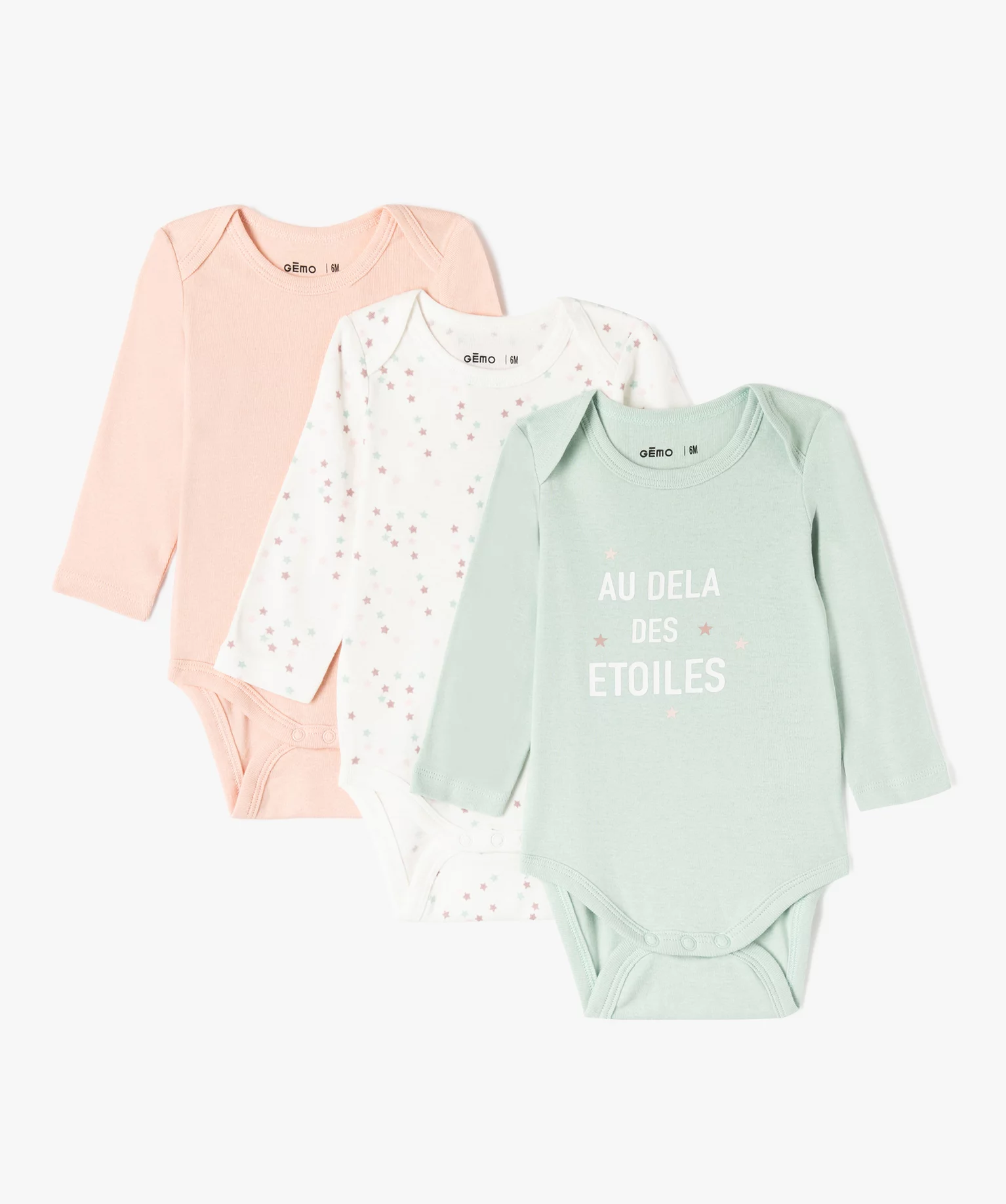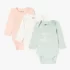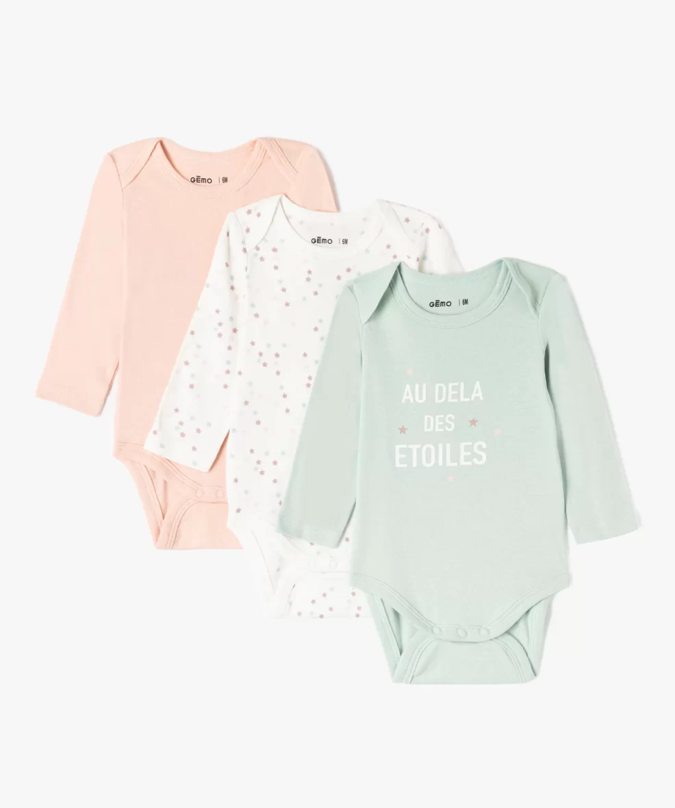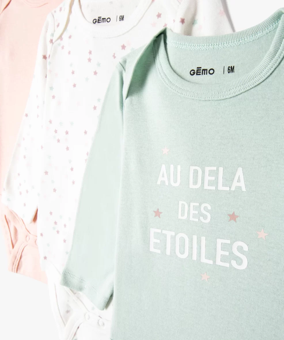 100% coton biologique Enfilage facile Lot de 3 bodies différents