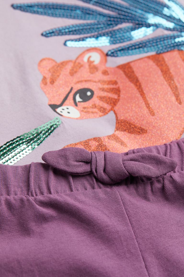 Ensemble en jersey de coton doux, composé d’un top et d’un short. Top avec courtes manches volantées et motif imprimé rehaussé de jolis détails devant. Short avec élastique souple et habillé à la taille. Nœud décoratif devant.