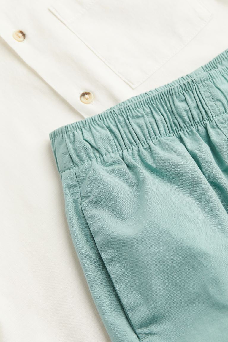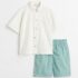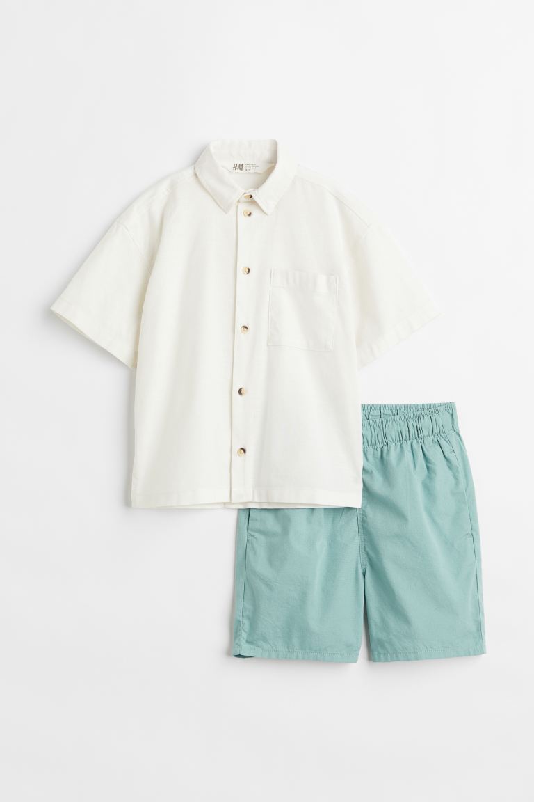 Ensemble confortable et habillé en coton tissé, adapté aux séances de jeu comme aux occasions festives, composé d’une chemise et d’un short. Chemise avec col, poche de poitrine et gorge simple. Coupe droite et décontractée avec emmanchures descendues et manches courtes. Empiècement dans le dos. Fentes latérales à la base. Short de longueur genou avec élastique habillé à la taille et poches couture discrètes.