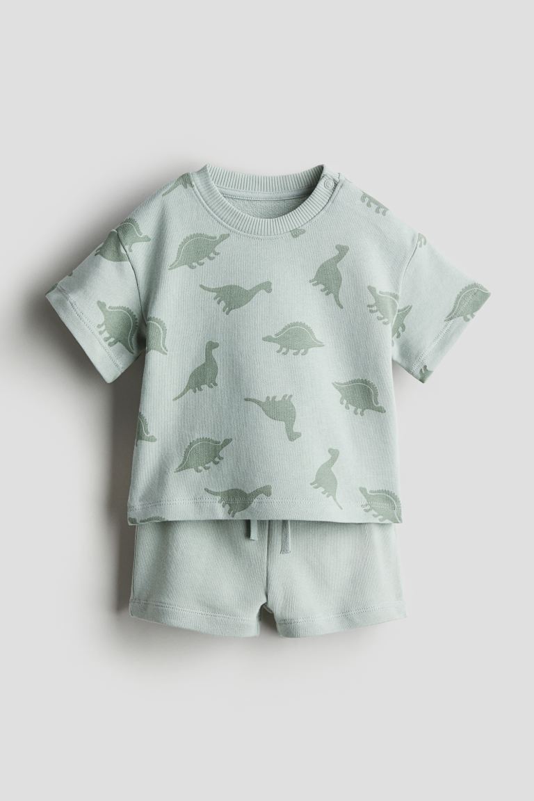 Ensemble en molleton léger avec imprimé all-over, composé d’un sweat et d’un short. Sweat avec encolure ronde et boutons-pression sur une épaule (sauf tailles 98 à 104). Emmanchures descendues et manches courtes. Base droite. Short avec élastique et cordon de serrage à la taille.