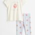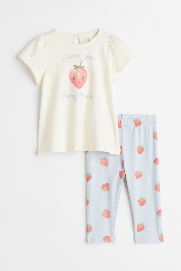 Ensemble imprimé en jersey de coton doux, composé d’un top et d’un legging. Top avec courtes manches bouffantes et petite ouverture dans le dos surmontée d’un bouton sur la nuque. Legging avec élastique souple à la taille.