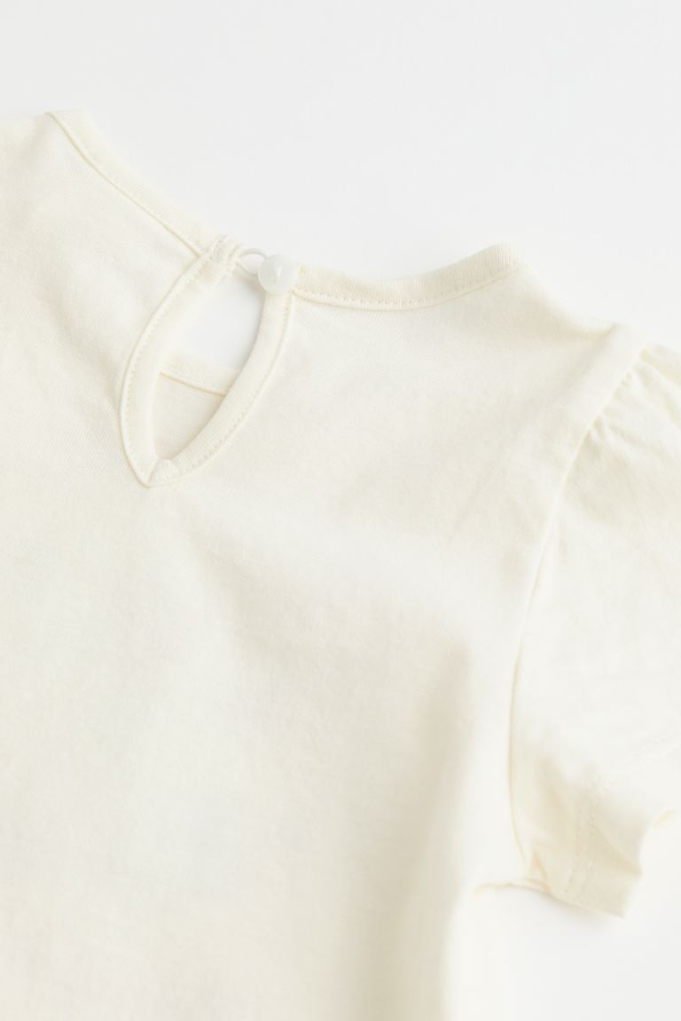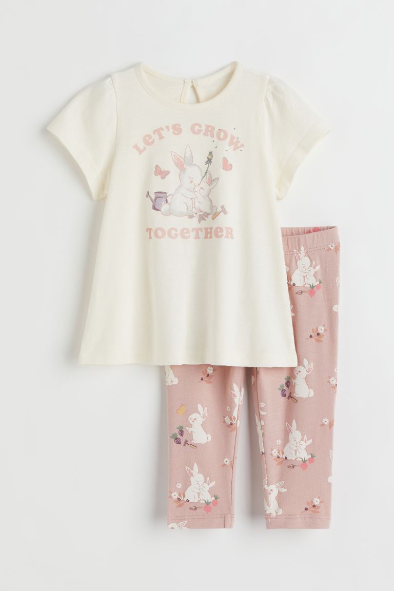 Ensemble imprimé en jersey de coton doux, composé d’un top et d’un legging. Top avec courtes manches bouffantes et petite ouverture dans le dos surmontée d’un bouton sur la nuque. Legging avec élastique souple à la taille.
