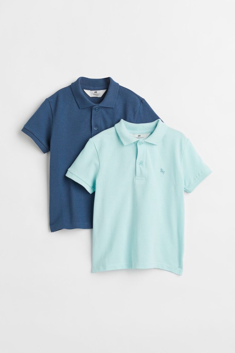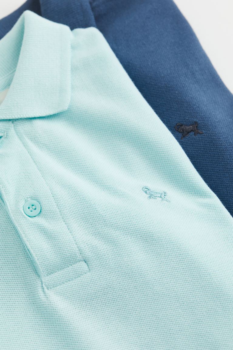 Polos à manches courtes en piqué de coton. Modèle avec col côtelé, boutonnage en haut et petite broderie sur la poitrine. Bord-côte en bas de manche.