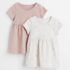 Robes en jersey de coton doux. Modèle à manches courtes avec découpe froncée en haut et jupe légèrement évasée.