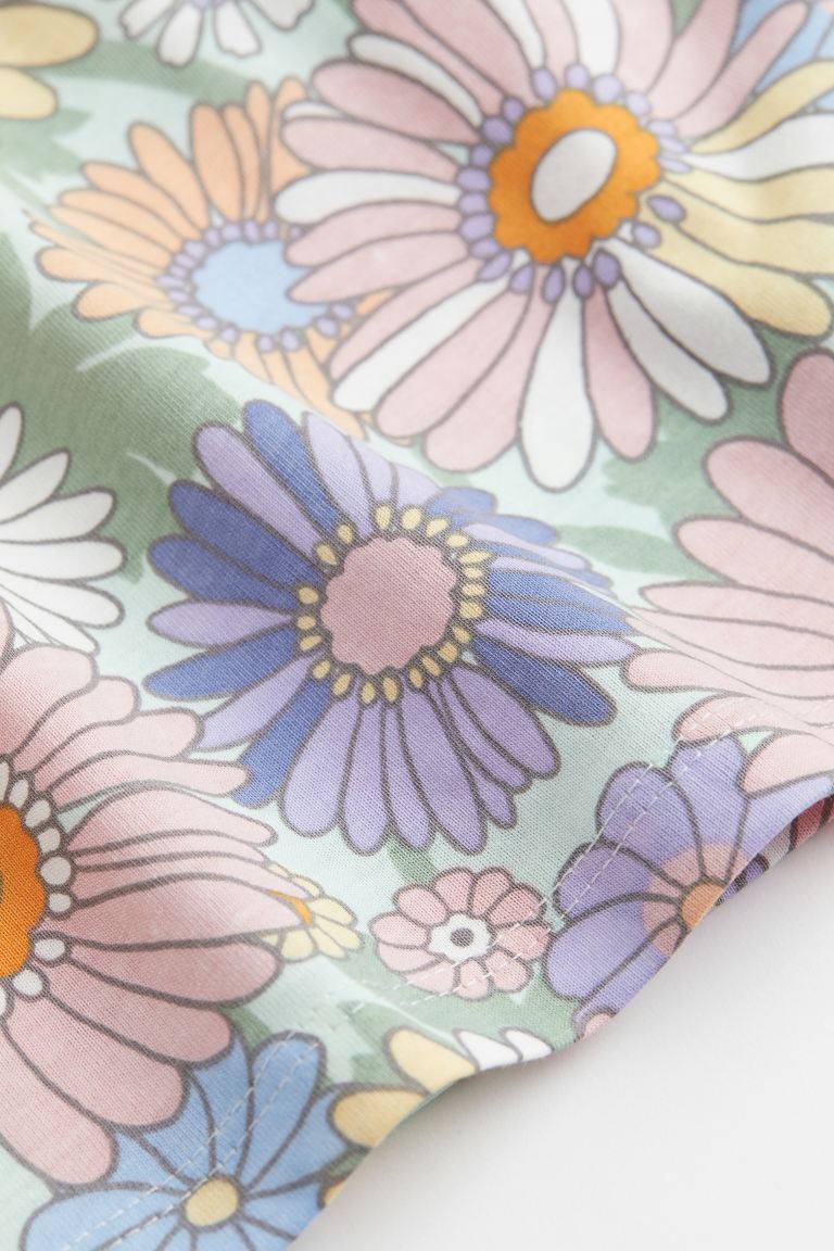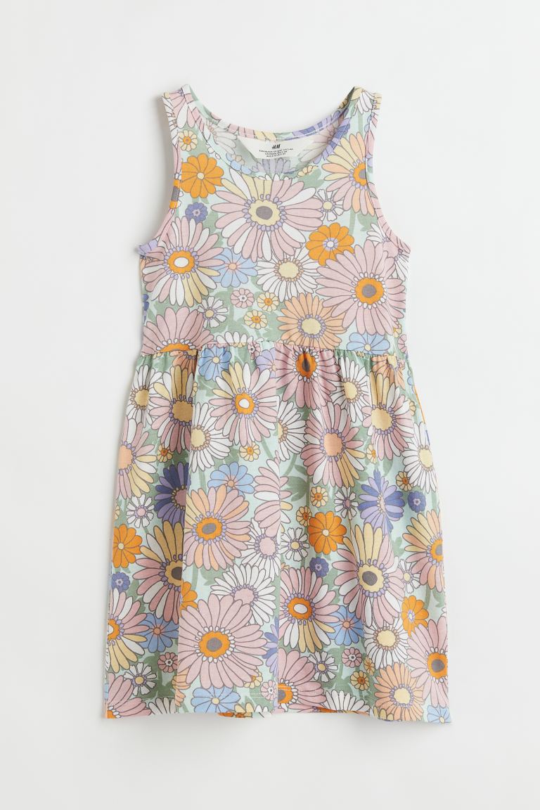 Robe à motif en jersey de coton. Modèle sans manches avec découpe froncée à la taille et jupe évasée.