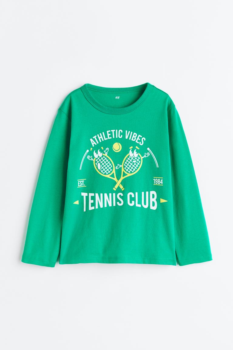 T-shirt en jersey de coton doux. Coupe droite avec bord-côte à l’encolure et manches longues.