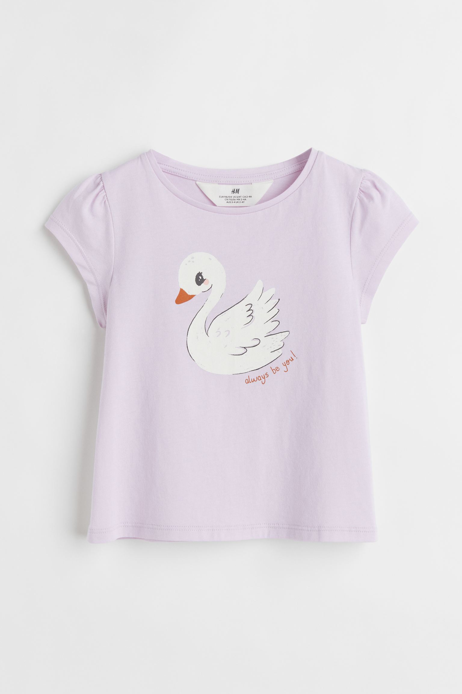 Top imprimé en jersey de coton doux. Modèle avec courtes manches bouffantes.